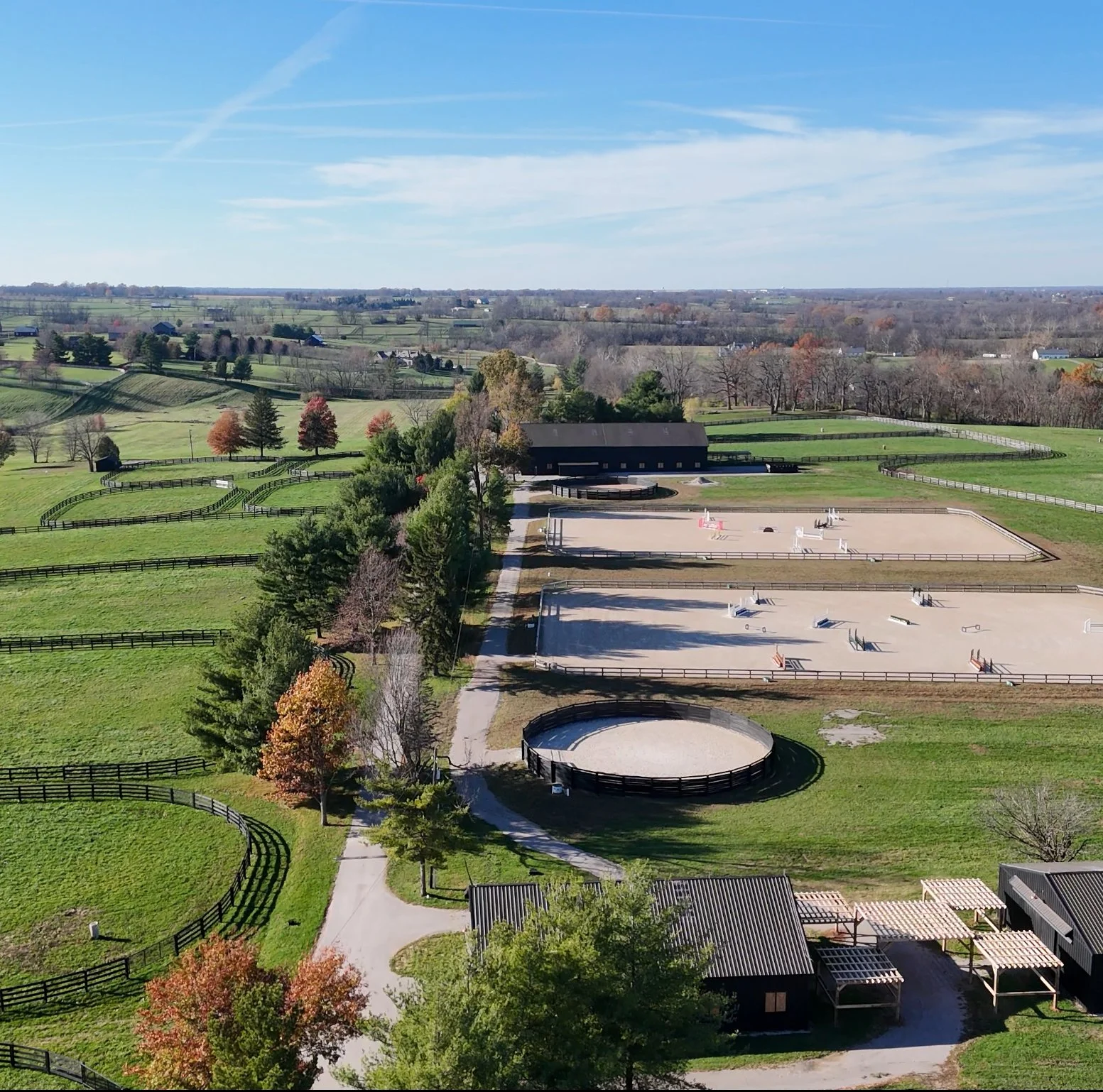 Just 5–10 minutes from the Kentucky Horse Park, our 268 acre farm is a refined haven where horses can rest, recover, and prepare in comfort. With (2) 150x250 competition arenas featuring the state-of-the-art ebb and flow watering system, the property blends world-class training facilities with a serene, estate-like atmosphere.